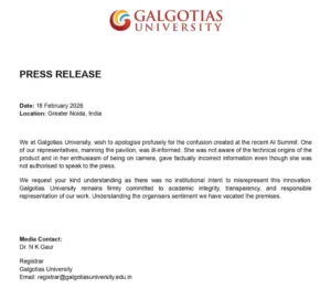 Issuing a statement, the institute said, “We at Galgotias University wish to apologise profusely for the confusion created at the recent Al Summit. One of our representatives, manning the pavilion, was ill-informed. She was not aware of the technical origins of the product and, in her enthusiasm of being on camera, gave factually incorrect information even though she was not authorised to speak to the press.”
